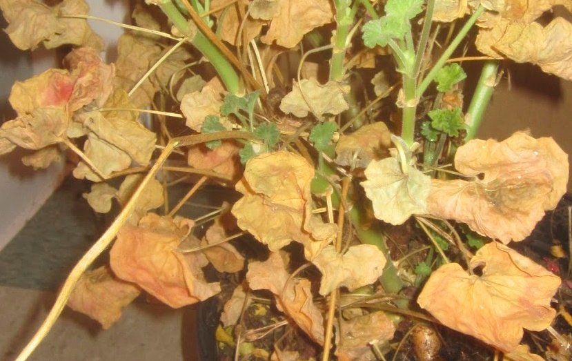 При отсутствии полноценного освещения листья бледнеют, становятся прозрачными, рост прекращается, растение впадает в экономный энергосберегающий режим. В таком состоянии живучая герань способна протянуть пару тройку месяцев.