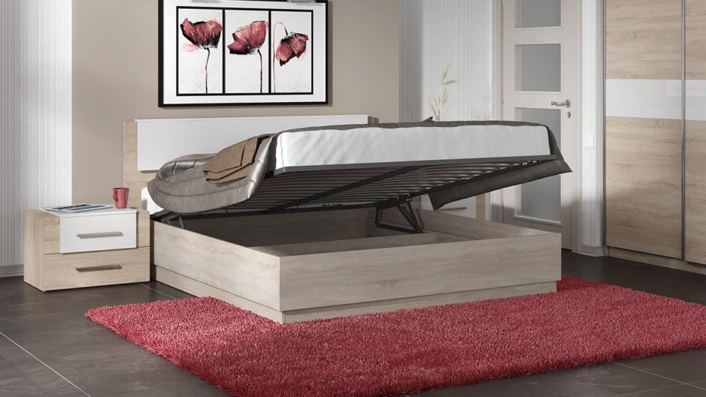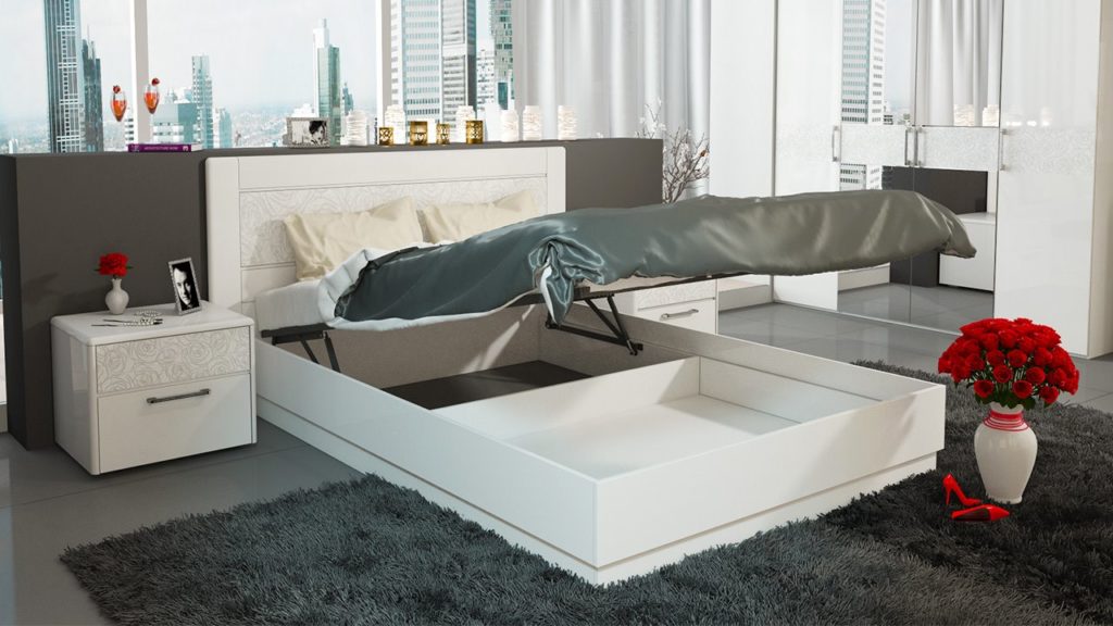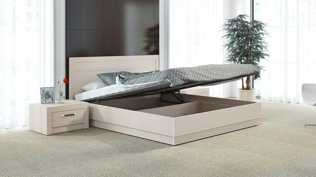 В условиях дефицита жилого пространства кровать с подъемным механизмом позволит оборудовать просторное спальное место. Основание плотно прилегает к каркасу, поэтому хранящиеся в ящике предметы защищены от пыли и влаги