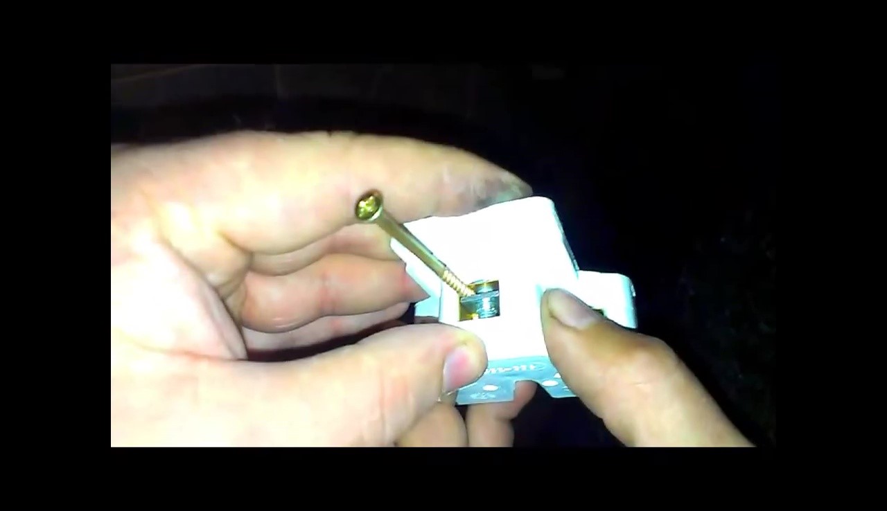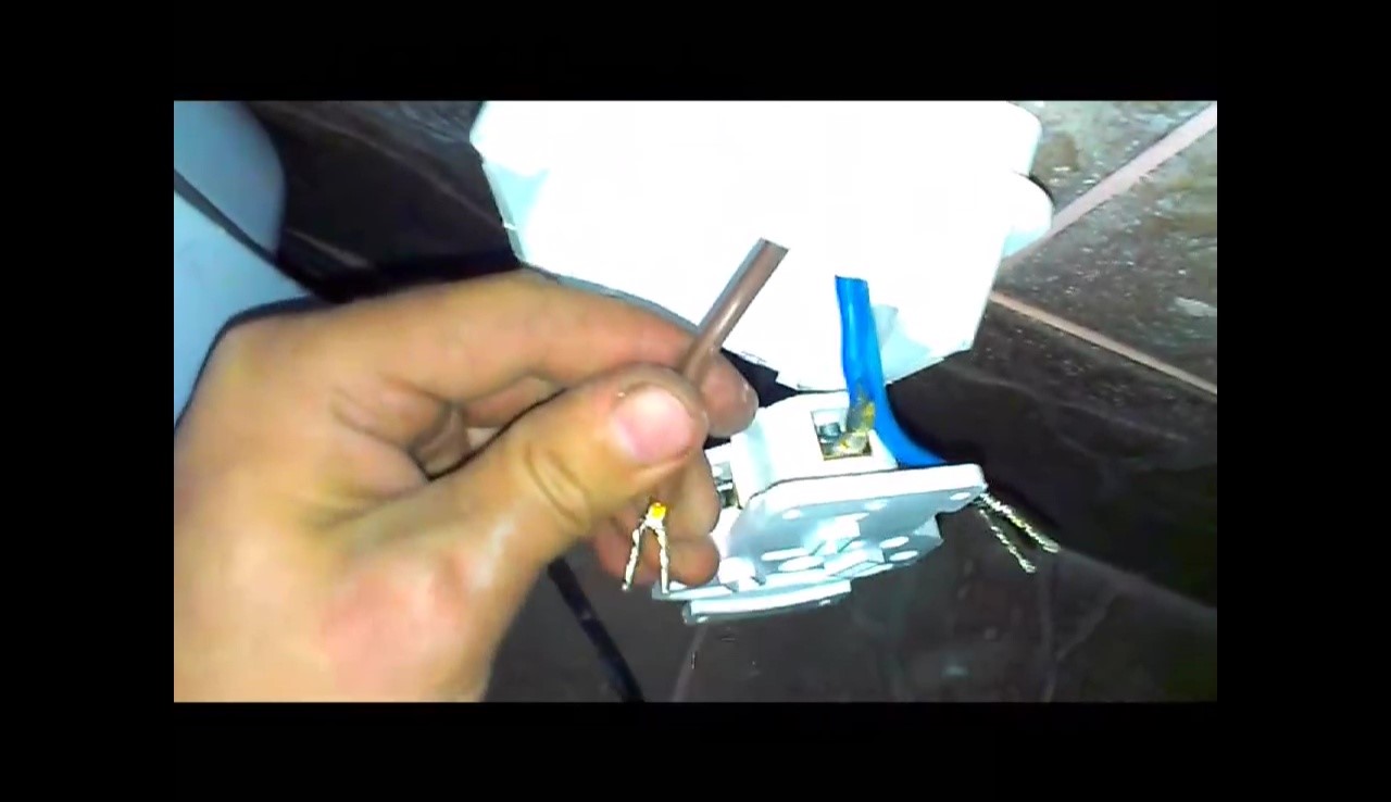 Если потребуется монтировать розетку и присоединять к ее клеммам жилы кабеля, проложенного от коммутатора, надо обязательно проверить, как жилы присоединены к его клеммам. Они не должны быть присоединены так, как саморез, имитирующий жилу на изображении ниже. Так присоединить жилу проще всего. Но из-за небольшой контактной поверхности токи большой силы разогреют контакт, и начнется лавинообразный процесс увеличения контактного сопротивления. В результате и провод, и розетка будут повреждены в лучшем случае. Но может и возгорание произойти…