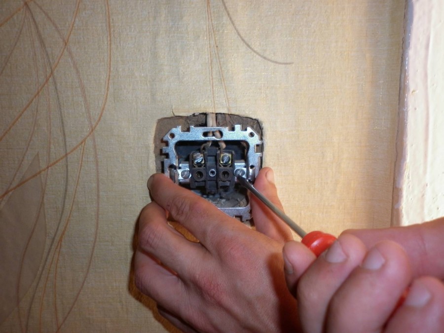 Теперь вам нужно открутить крепления основной части выключателя, после чего аккуратно отсоединить провода из контактов