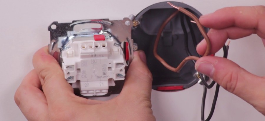 Теперь, когда у вас есть пустая коробка, из которой только торчат несколько проводов, можно начинать монтаж нового выключателя. Обычно, на обратной стороне есть маркировка, которая показывает к какому контакту нужно подсоединять какой провод.