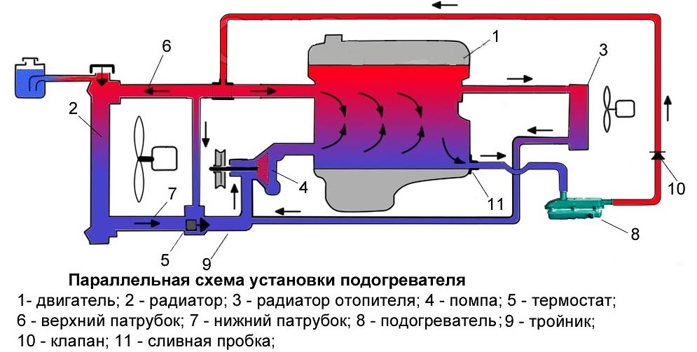 Кроме нагрева рубашки охлаждения движка, нагреватели могут параллельно: