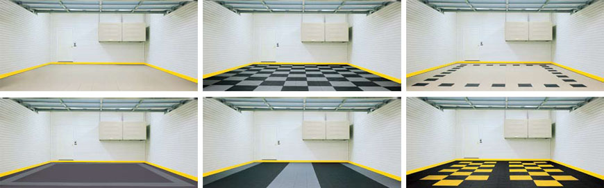 Задачу устройства пола в гараже в сжатые сроки и с минимумом пыльных работ помогут решить напольные ПВХ-плитки для гаража. Различные варианты цветов и возможность их комбинирования придадут полу уникальность. С помощью плиток разного цвета можно, например, выложить на полу «шахматную доску» или визуально выделить зону парковки автомобиля. Но это лишь один из вариантов напольных покрытий, предлагаемых ГаражТек.