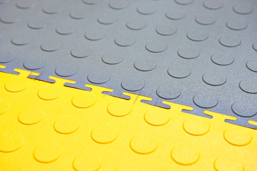 Напольные плитки из ПВХ (поливинилхлорид) крепятся друг к другу с помощью специальных замков, предусмотренных конструкцией, образуя сплошной настил. Основой для укладки такого покрытия может служить цемент, асфальт или любое другое ровное основание. В зависимости от веса автомобиля можно подобрать покрытие необходимой толщины в целях оптимизации механического воздействия