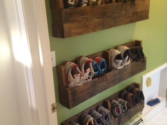 Одним из интереснейших вариантов является создание обувных полок из подручных материалов. Обычные водопроводные трубочки и пара досок могут стать гениальным дизайнерским решением. Даже из обычных деревянных ящиков возможно создать аккуратную и привлекательную обувную полочку.