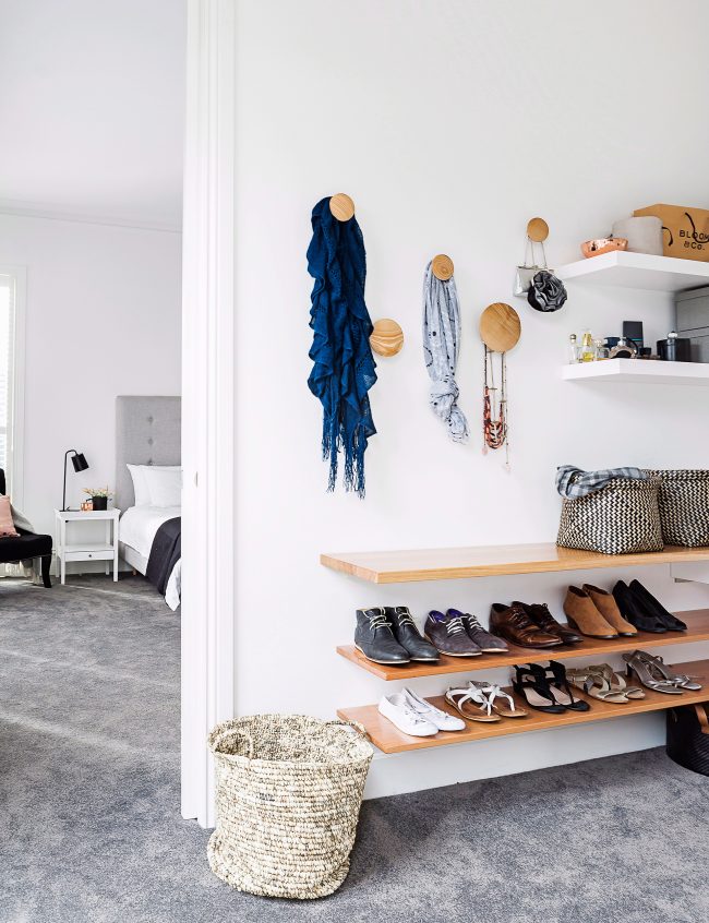 Когда нет возможности оборудовать прихожую вместительными шкафами, можно обустроить ее различными видами полочек.