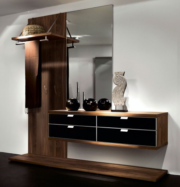 Полки с вешалкой выполняют сразу несколько функций, на вешалку можно повесить одежду, а полки могут послужить домом для перчаток, сумок, шапок, шарфов и т.д. Они хорошо вписываются в любой интерьер, не загромождают пространство и позволяют расположить верхнюю одежду.