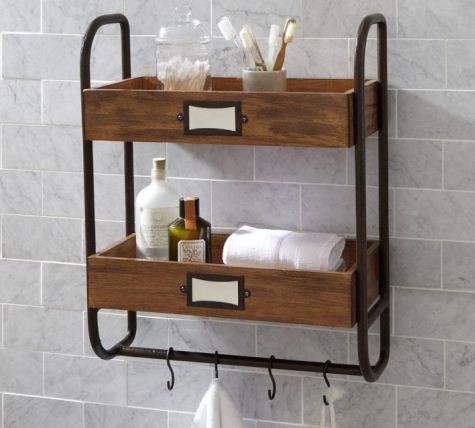 Подвесная полочка на металлическом каркасе с деревянными ящичками для ванной в ретро-стиле
