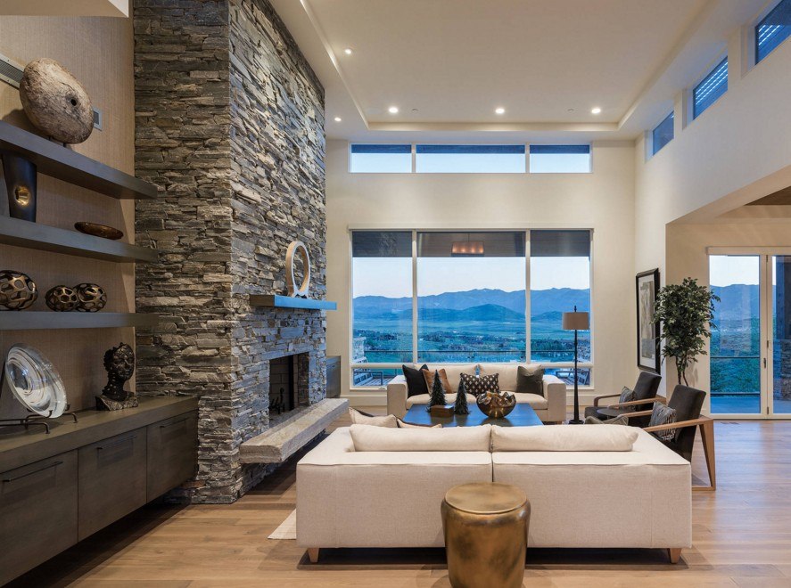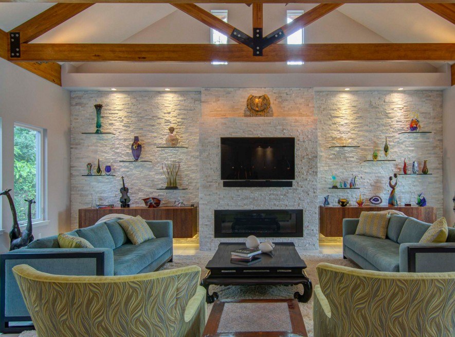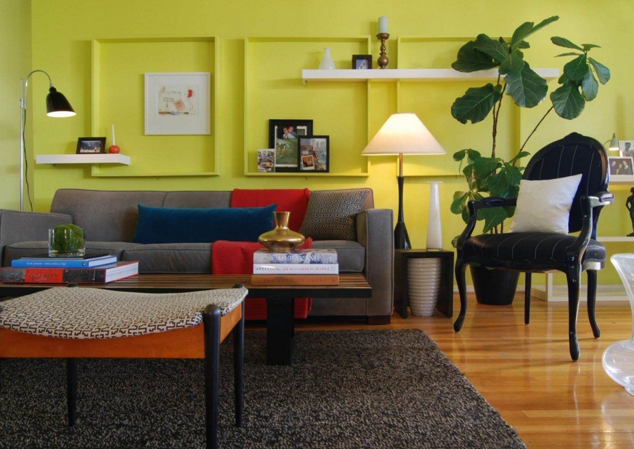 Ригинальность гостинной с помощью настенной полки
