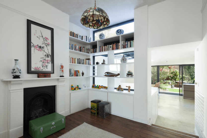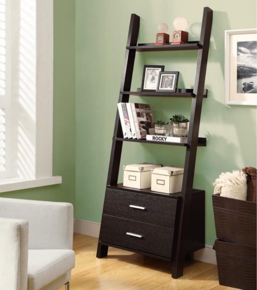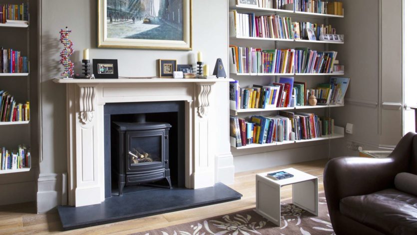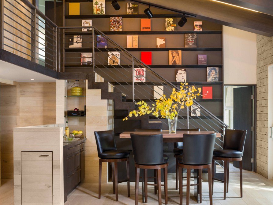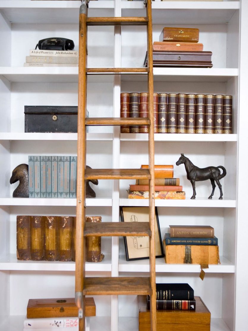 Богатая домашняя библиотека – отличный повод приобрести специальный стеллаж для книг. Пусть его дизайн будет особенным, к примеру, таким, как на фото ниже