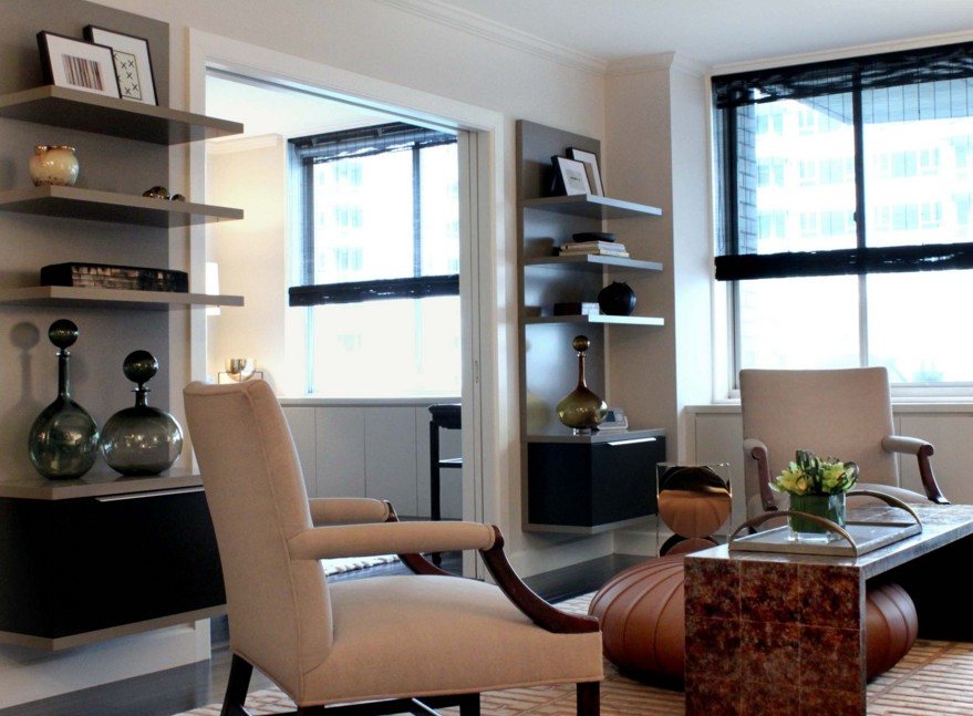 При качественной работе полки превращаются в полноценную мебель, которую, как и любой другой предмет, необходимо гармонично вписать в стилистику помещения.
