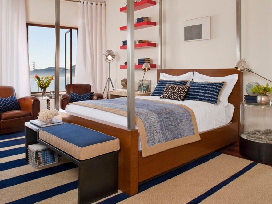Настенные полки в спальне