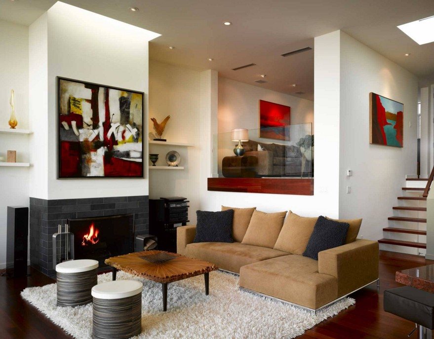 Один из самых простых и оригинальных способов украсить гостиную, это повесить полку на стену. Сейчас нет необходимости покупать ее в магазине, на сегодняшний день, материалы на рынке позволяют сделать ее самостоятельно, под свой дизайн комнаты.