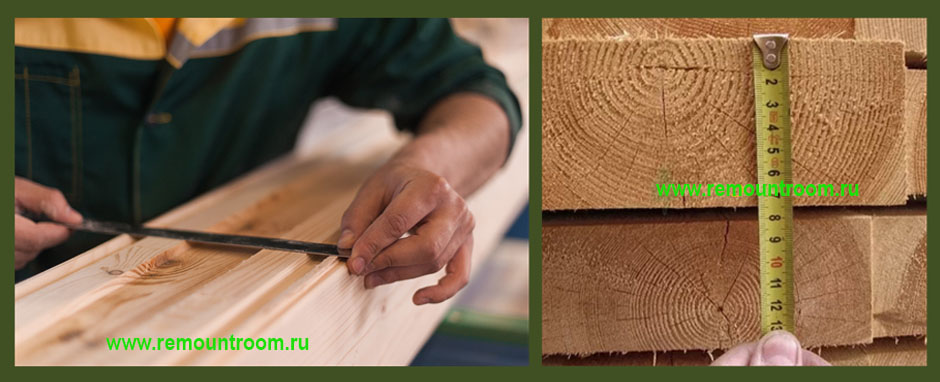 Размеры досок или брусков, а именно: длину, ширину и толщину измеряют металлическими линейками, рулетками, штангенциркулями, штангенглубиномерами. Помимо измерительных приборов существуют ещё методы контроля досок.Ширину и толщину материалов измеряют по торцам (вначале и в конце) и в середине длины деталей.