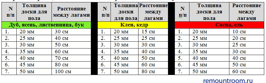 Таким образом, в статье рассмотрена толщина доски для пола в зависимости от породы дерева и расстояния между лагами.