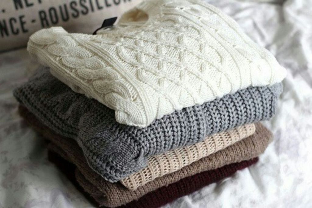 Трикотажные и шерстяные свитеры и кофты не развешивают на плечики. Это приводит к вытягиванию и потере формы изделия.