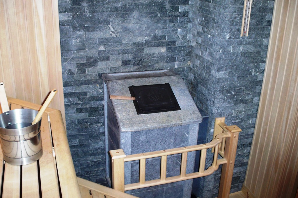 Они обладают высокой прочностью и термоустойчивостью. Любой камень, используемый для облицовки поверхностей является частью защитной конструкции. Следовательно, плитку необходимо крепить к огнеупорному материалу (в виде минерита, цементно-волокнистой плиты, стекловолокна и др.), который, в свою очередь, укладывается на стену бани с зазором в 2–3 см для вентиляции.