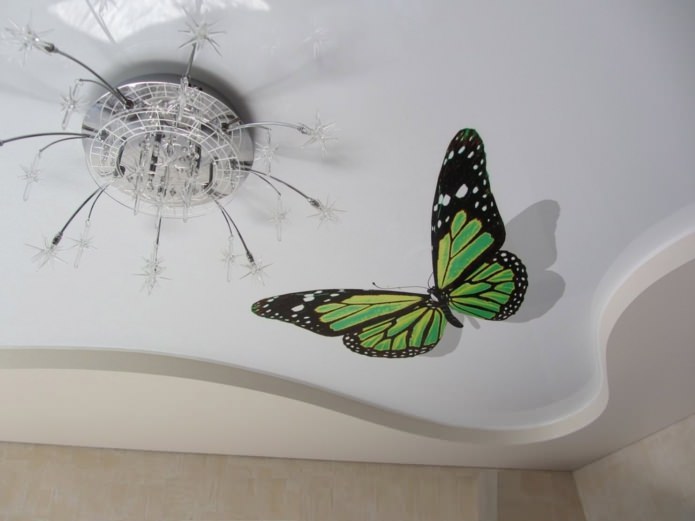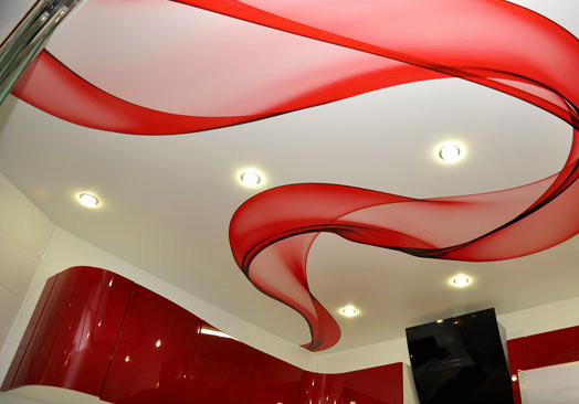 - прекрасный внешний вид, поскольку натяжные потолки могут иметь любой цвет или рисунок, быть матовыми или глянцевыми, с их помощью можно создавать многоуровневые конструкции, встраивать точечное освещение и т.д.;