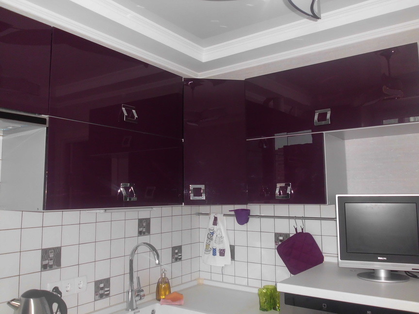 К недостаткам натяжных покрытий можно отнести не слишком высокую стойкость к нагреву, однако, можно выбрать текстильное покрытие, которое перепадам температуры более устойчиво. Второй минус – уменьшение высоты кухни. Особенности монтажа не позволят обойтись без этого, но, при желании, можно смонтировать покрытие на минимальном расстоянии от базовой плоскости, уменьшив стены всего на три – четыре сантиметра.