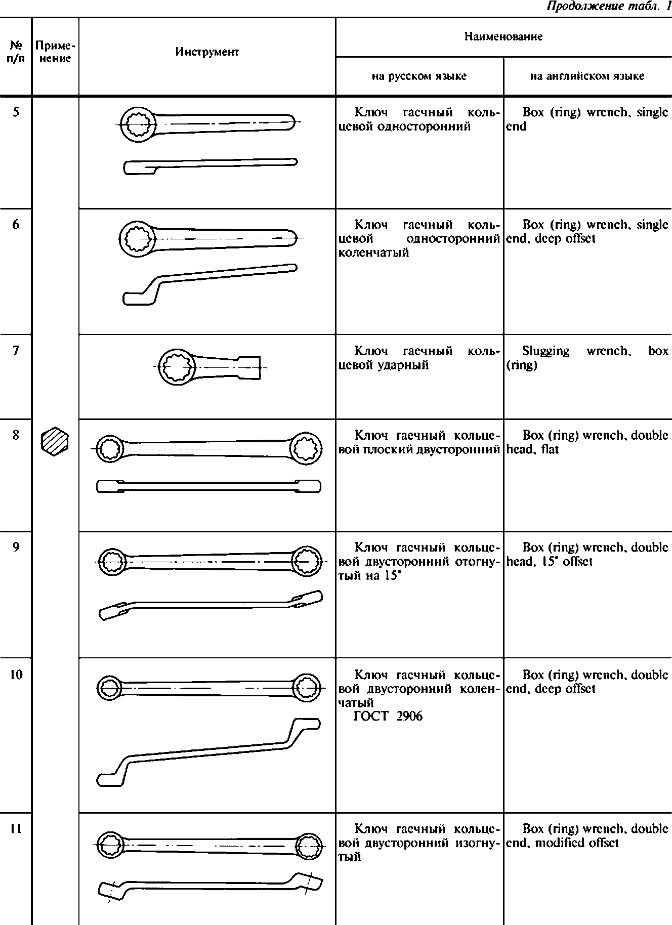 2.1. Номенклатура ручного инструмента для винтов и гаек должна соответствовать указанной в табл. 1—4.