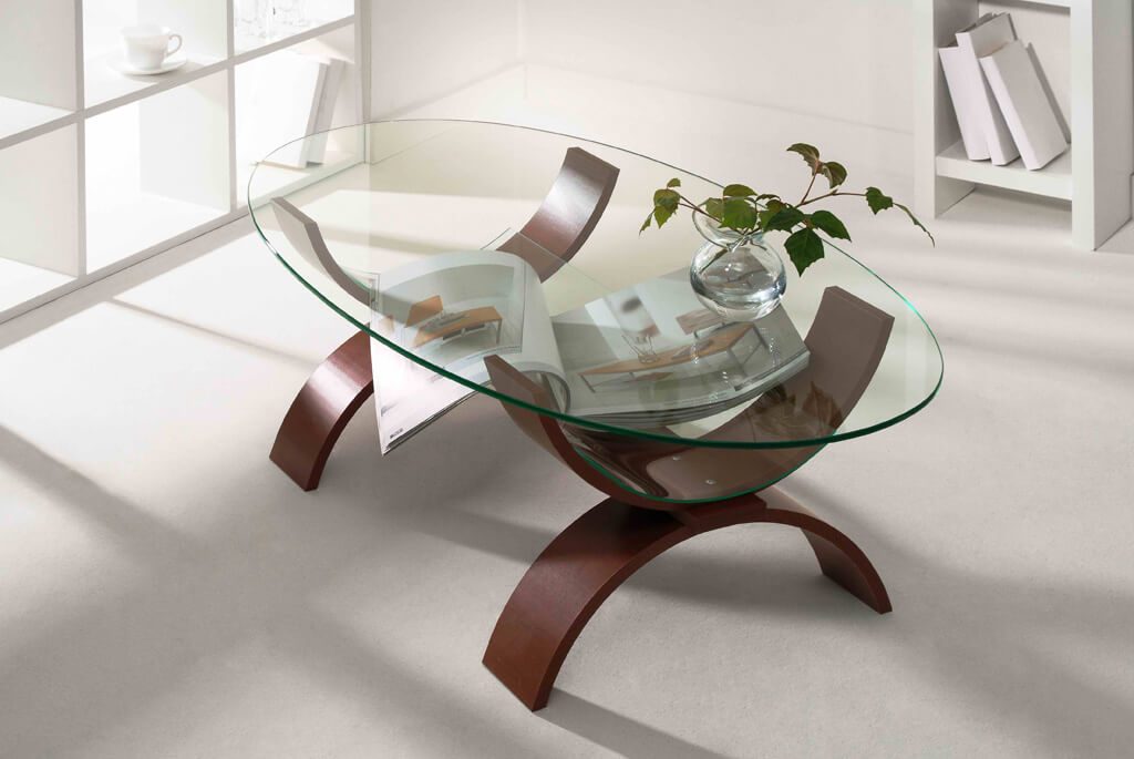 Особенность журнального столика из стекла кроется в его декоративности. Он способен стать украшением любого дома. Компактные размеры и небольшая высота отличают его от остальных изделий этой группы. Поверхность стеклянной модели часто служит местом для размещения элементов, поддерживающих тематическое оформление: вазы, ракушки, настольные лампы, статуэтки и др.