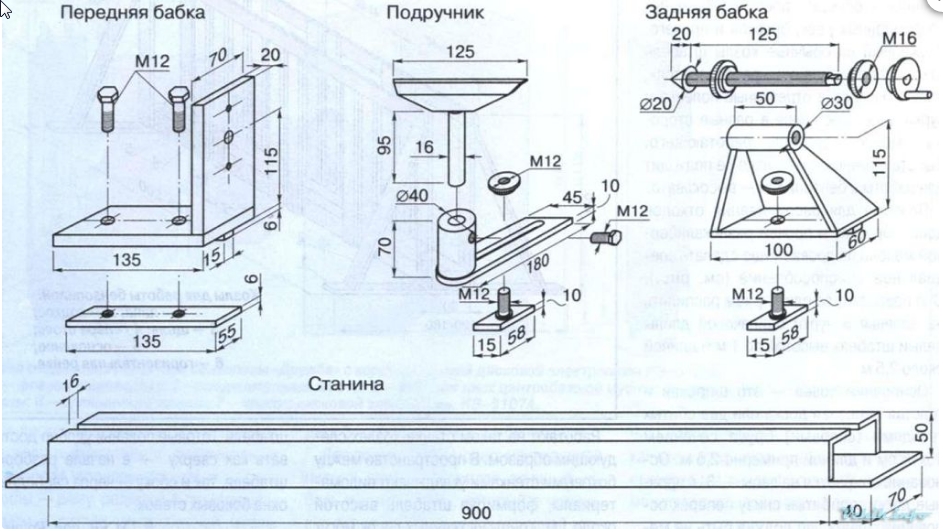 Такие габариты устройства позволяют работать с заготовками диаметром 250 мм и длиной 200 мм. Конечно, размеры не впечатляют, но это наш первый станок. Сборка начинается с изготовления станины – к ней крепятся остальные механизмы.