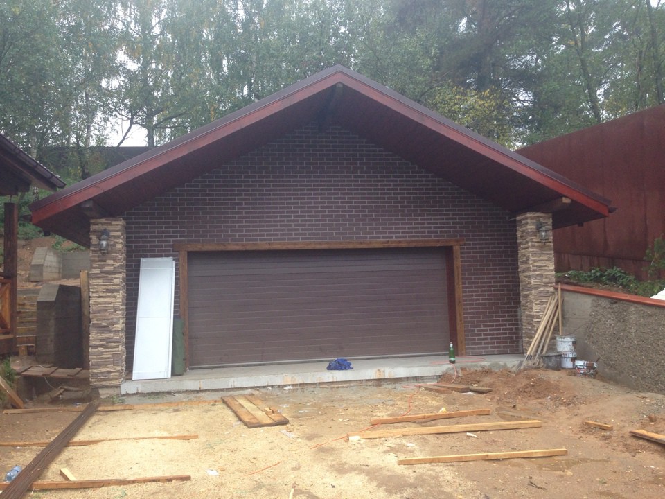 А вот так могут выглядеть уже построенные гаражи с широченными воротами для двух машин.