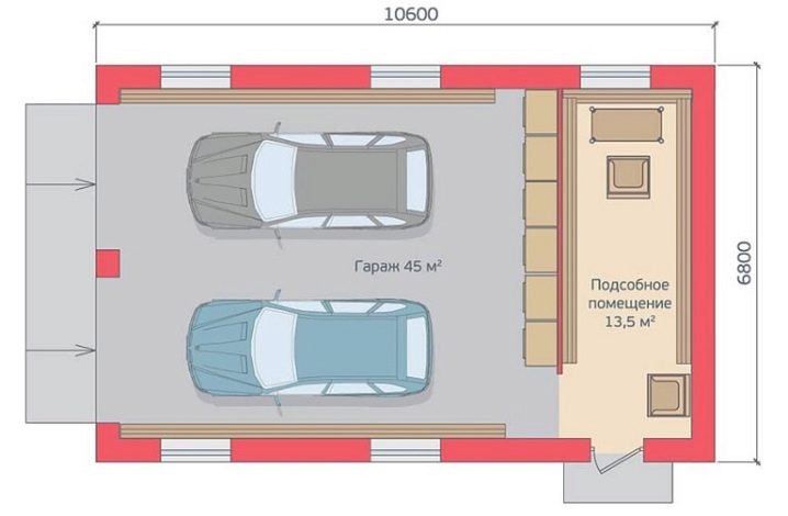 Зная данные значения, можно легко рассчитать размеры гаража на два авто.