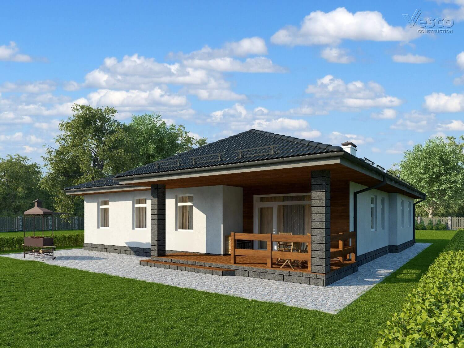 Проект каркасного одноэтажного дома с тремя спальнями для семьи из 4 человек