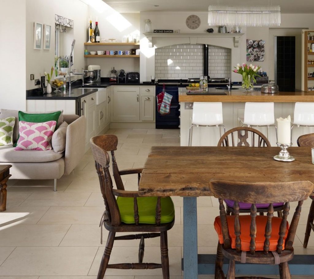 - соединение пространств гостиной и столовой, кухни и гостиной, кухни и столовой.
