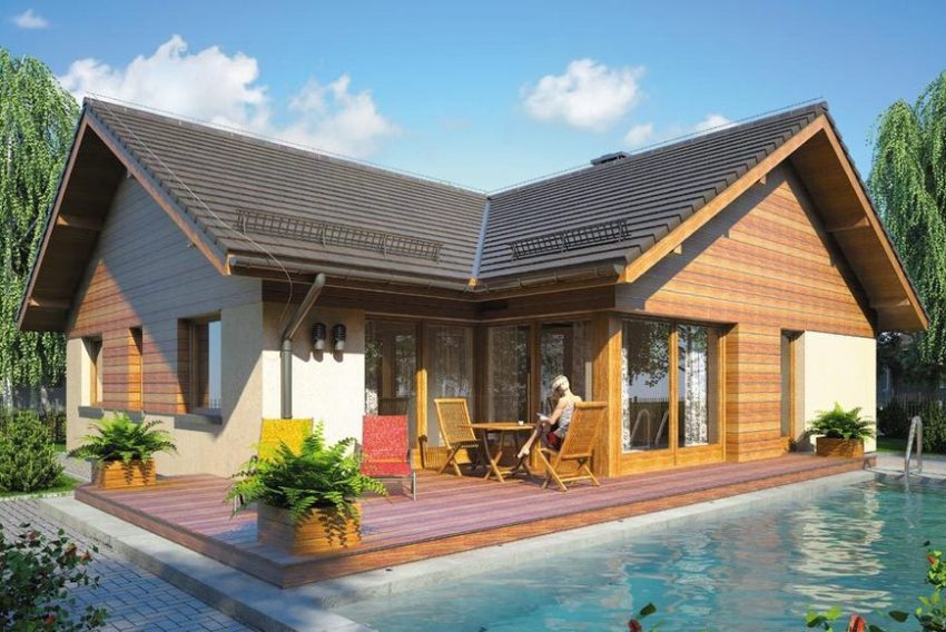 Наиболее часто используемые материалы для строительства домов с террасой – кирпич и дерево. Одноэтажные дома из кирпича, проекты которых предусматривают террасу, уже давно стали традицией в индивидуальном строительстве. Использование в возведении дома дерева дает возможность выполнить оригинальную отделку террасы, которая станет островком комфорта и отлично впишется в ландшафт.