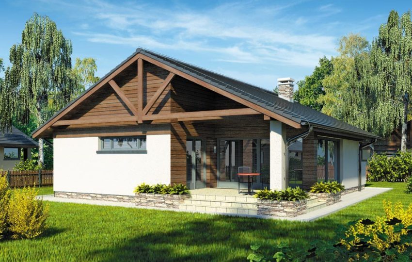 Проект 2. Фасад одноэтажного дома и вид на главный вход