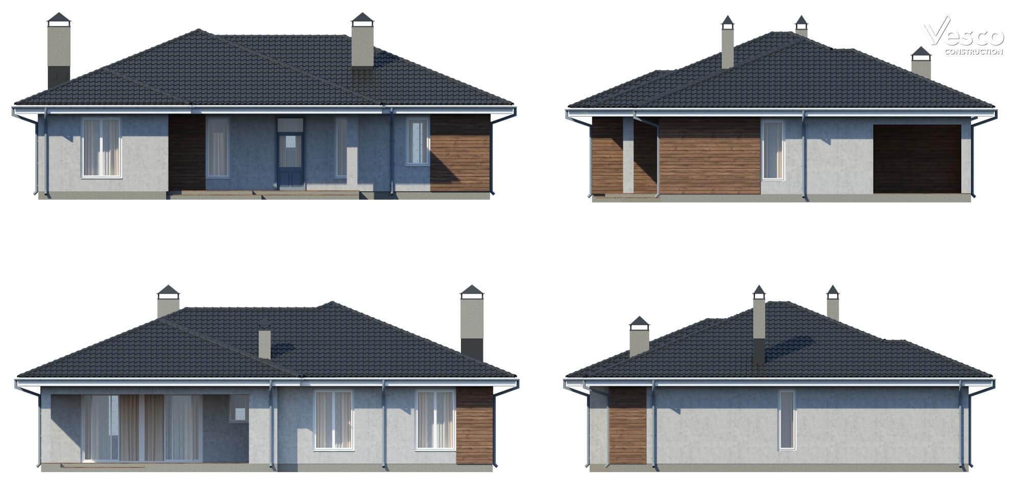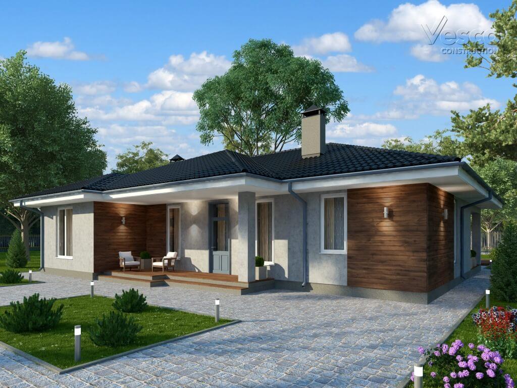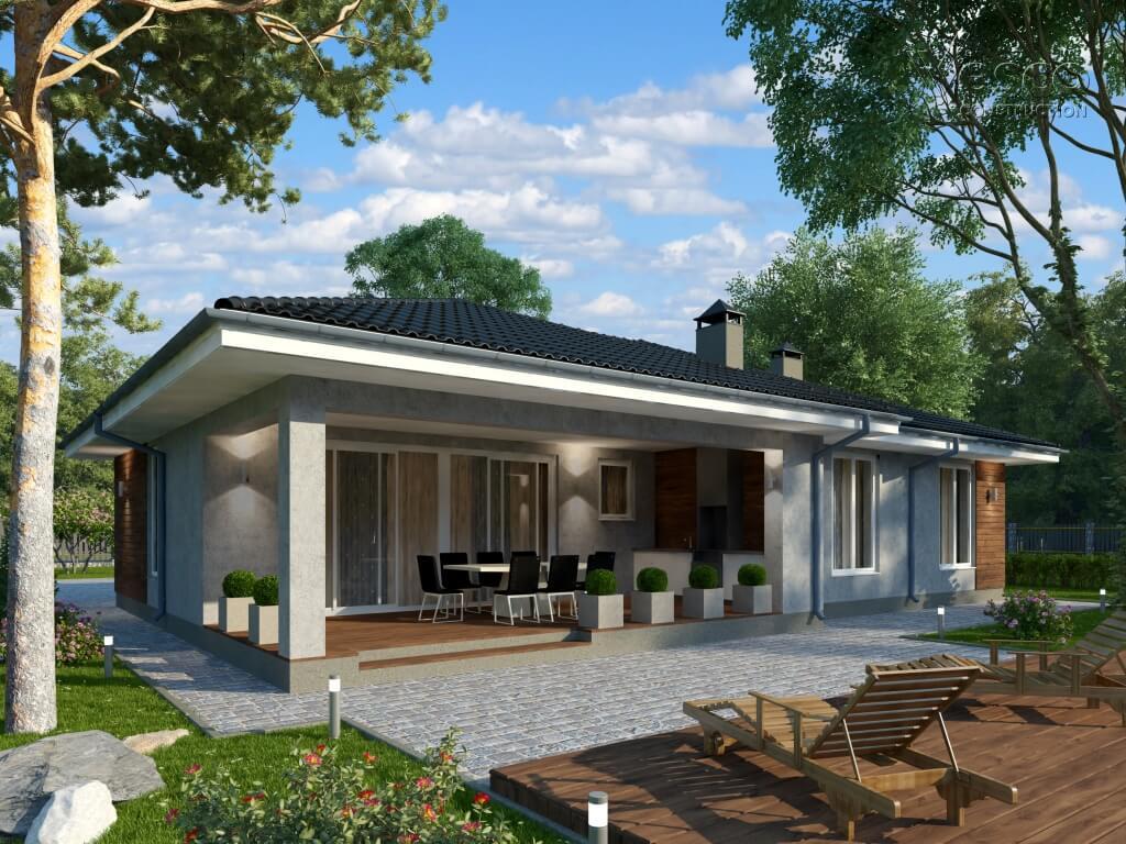 Проект Лури полностью продиктован комфортной одноэтажной концепцией загородной жизни. Стиль и элегантность во внешней отделке придаёт особый шарм и приглашают к знакомству с этим домом поближе.