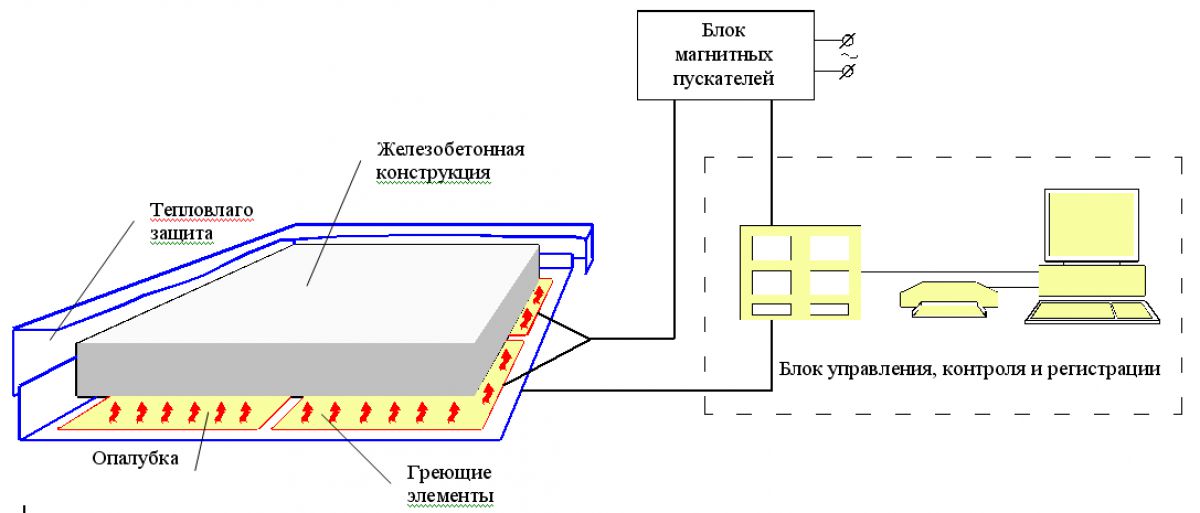 • схема подключения токопроводящих элементов для прогрева бетона электродами должна быть разработана для каждого случая индивидуально.