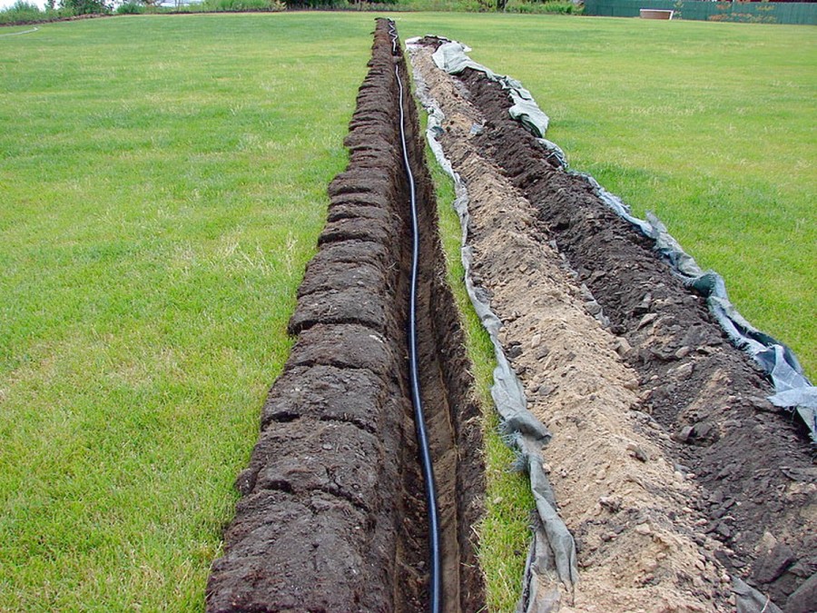 - Затем канава полностью засыпается землей несколько выше уровня поверхности. Это нужно для того, чтобы после естественного уплотнения и оседания почвы на месте укладки не образовалось углублений.