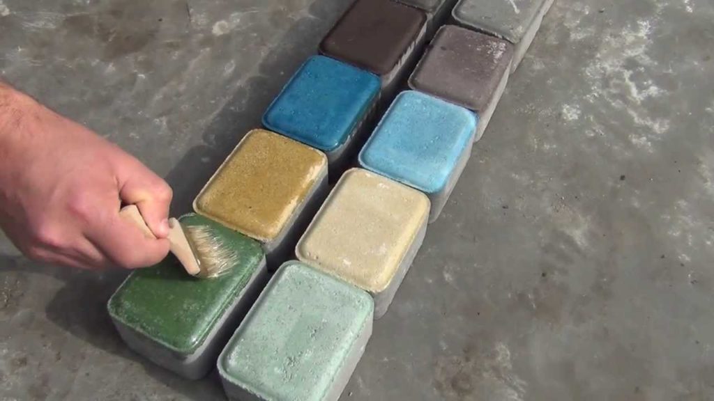 Для тротуарной плитки или плитки, которая укладывается в помещении на пол, используются специальные составы. Чаще всего это пропитка с эффектом мокрого камня. Использовать обычные красящие средства не рекомендуется – это может испортить минеральный комплекс изделия.