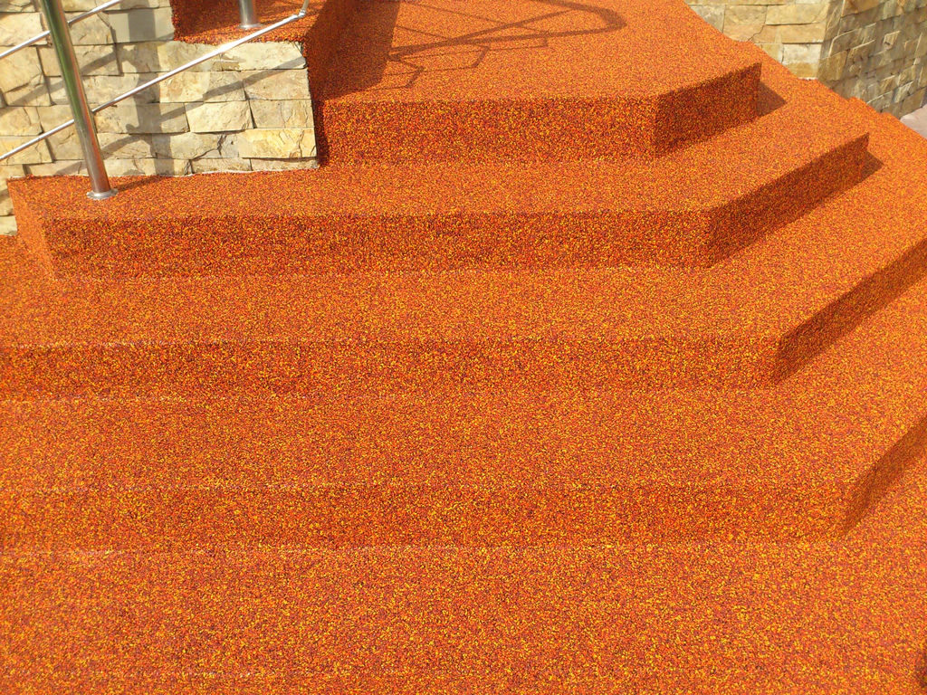Бесшовное резиновое покрытие – изготавливается непосредственно перед несением на крыльцо и ступени. Резиновую крошку смешивают с полиуретановым клеем и пигментом. Смесь укладывают шпателем или напыляют, используя специальное оборудование.