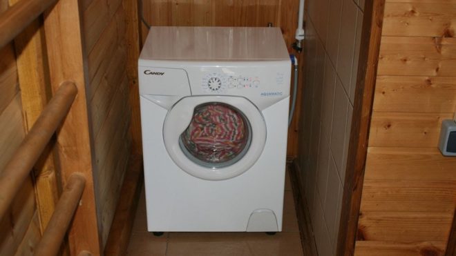 Если в бане планируется установка стиральной машины, то располагайте её только в сухом помещении и ведите отдельную питающую линию от индивидуального автомата. Также отдельная линия должна идти и для нагревательного бака.