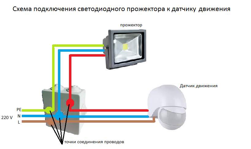 Использование дополнительного выключателя. Если последний присоединен параллельно датчику, прожектор может загореться как автоматически, так и при ручном включении. Нередко используется и последовательное подсоединение. Тогда освещение заработает от движения, только если переключатель повернут на ручной режим.