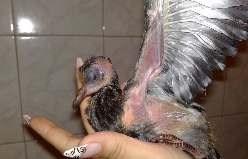 Нежелательное внимание заводчика может вызвать тревогу и агрессию со стороны пернатых. Только небольшая часть людей видела новорожденных голубят, из-за чего описание внешнего вида детенышей, только что появившихся на свет, противоречивое и не всегда точное