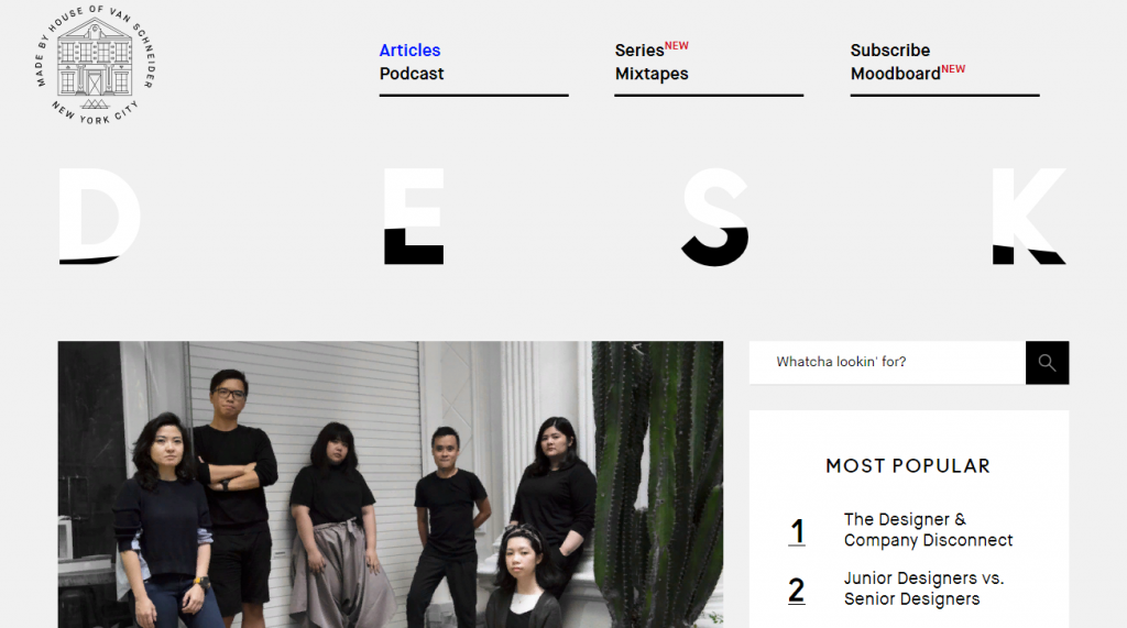 Блог написан о вещах, которые волнуют дизайнеров уже сейчас. The DESK Magazine – это отличная возможность увидеть все последние тренды в дизайне. Статьи в журнал публикуются по категориям: дизайн, эффективность, жизненные уроки, карьера, советы, фотография, фриланс, психология, жизнь в Нью-Йорке и другие.