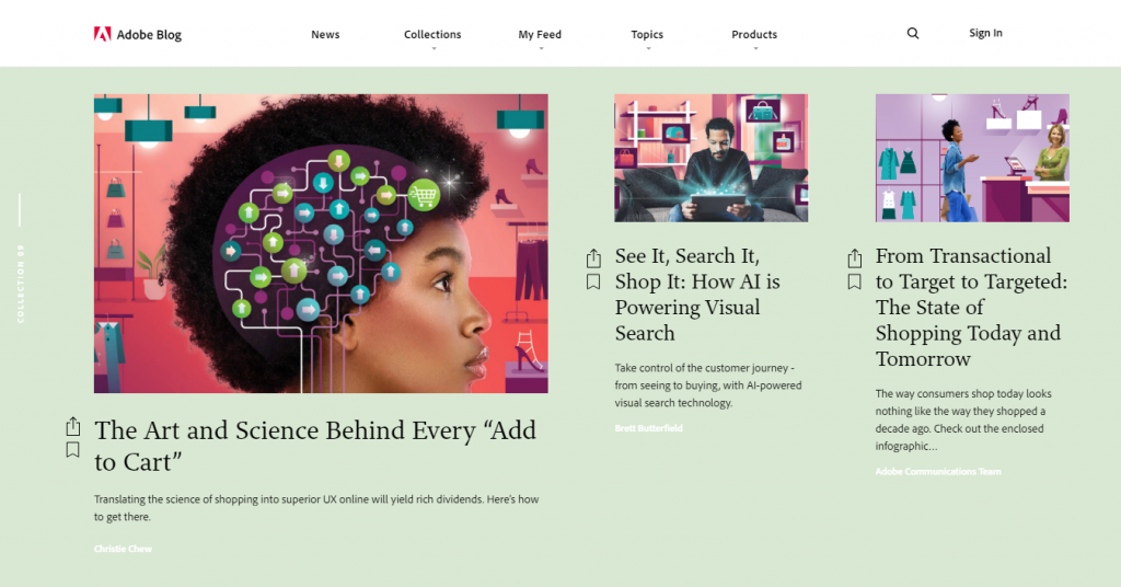 Блог о дизайне имеет уникальные коллекции статей. Это тематические подборки, которые отобраны редакторами на основе разных концепций дизайна. С их помощью вы не упустите ни одной тенденции в графическом дизайне.