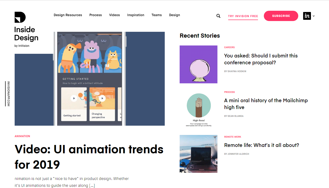 Inside Design Blog – по-настоящему информативный блог о дизайне от компании InVision. Судя по названию блога, он расскажет все о дизайне, каким он есть изнутри. Статьи удобно разделены по категориям: карьера, портфолио, фриланс, обсуждение, вдохновение, командам, анимация, видео и другие. Большая часть дизайн блога посвящена пользовательскому интерфейсу.