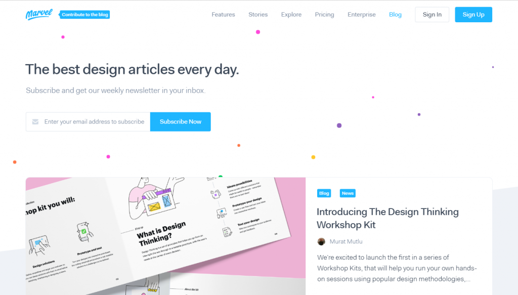 Блог Marvel – это идеи и слова о пользовательском опыте, дизайне, работе и многом другом. Ресурс рассказывает все о дизайне сайтов, приложений и цифровых иллюстрациях. Отборные статьи публикуются каждый день, поэтому вы узнаете все тренды графического дизайна 2020. Сообщество читателей блога составляет более 500 000 пользователей.