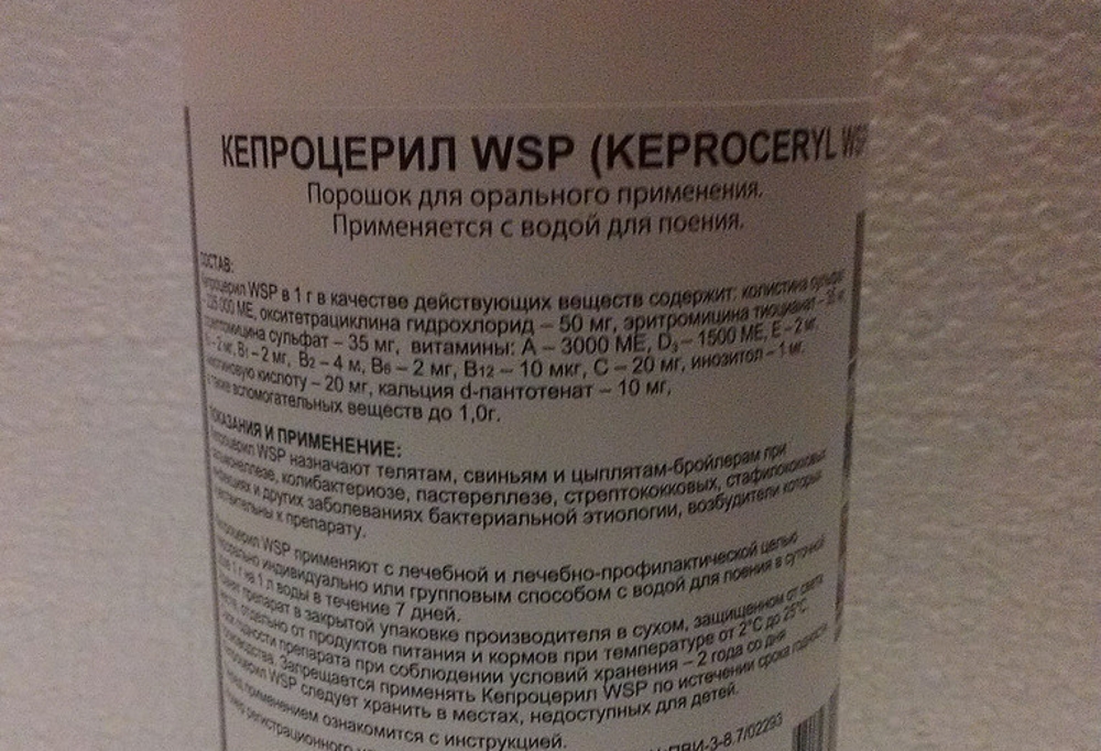 - свиньям и телятам нужно разбавить один грамм кепроцерила на литр жидкости.