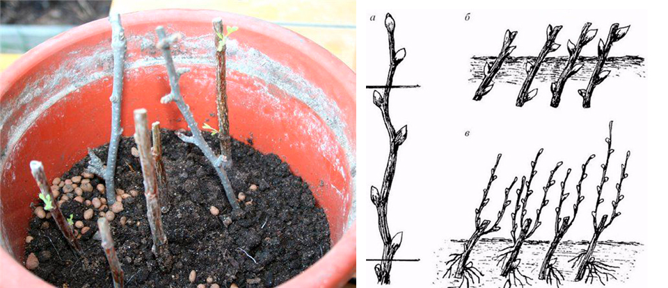 - черенкование. В качестве посевного материала используют молодые побеги, длина которых не меньше 20 см. Их срезают ранней весной до того, как начнется цветение. Чтобы получить быстрый результат, всю листья кроме тех, что находятся на макушке, обрывают. Оставшиеся наполовину укорачивают. Потом на нижней части черенка делают несколько царапин. Это ускорит процесс образования корневой системы. Обработанные побеги на 24 часа помещают в тару, наполненную водой. В нее обязательно добавляют стимулятор роста, например, Корневин. Вместо него можно использовать жидкий мед. На 10 л берут одну столовую ложку указанного продукта. На последнем этапе черенки высаживают в смесь, состоящую из речного песка и торфа, и накрывают полиэтиленовой пленкой. Пересадку на постоянное место проводят в начале следующего сезона;