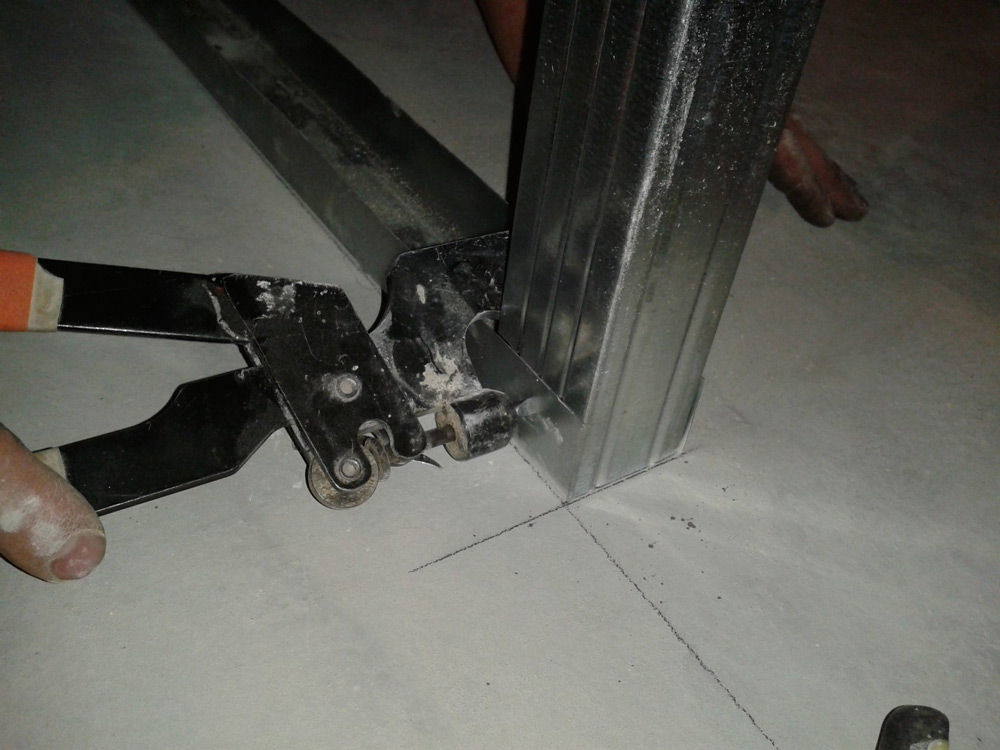 Соединять два профиля можно саморезами прокалывающими метал-метал, длинной 9 мм. Шляпки при этом лучше выбирать плоские, для того чтобы листы гипсокартона равномерно прилегали по всему периметру каркаса. Или «потратиться» и купить просекатель для гипсокартона. Просекатель напоминает дырокол с одним «зубом».