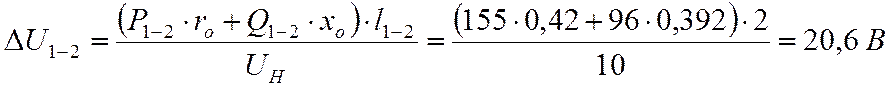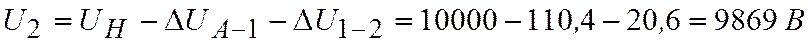 Выбранные кабельные линии проверяются по потерям напряжения. Минимально допустимое напряжение у потребителя 5700 вольт, то есть позволительная потеря напряжение в линии от трансформатора до потребителя 900 вольт.