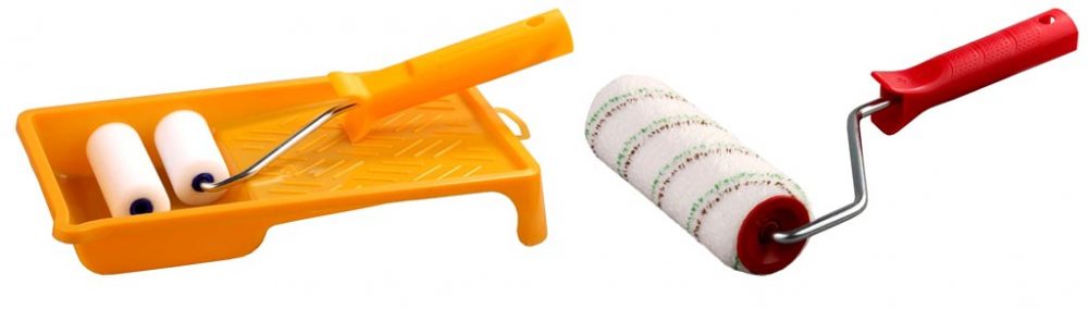 При работе по небольшой площади оптимально использование ворсового валика с длинной ручкой и ванночки для лакокрасочных смесей. Ванночка должна иметь прокатную поверхность для удаления излишек грунта с поверхности валика.