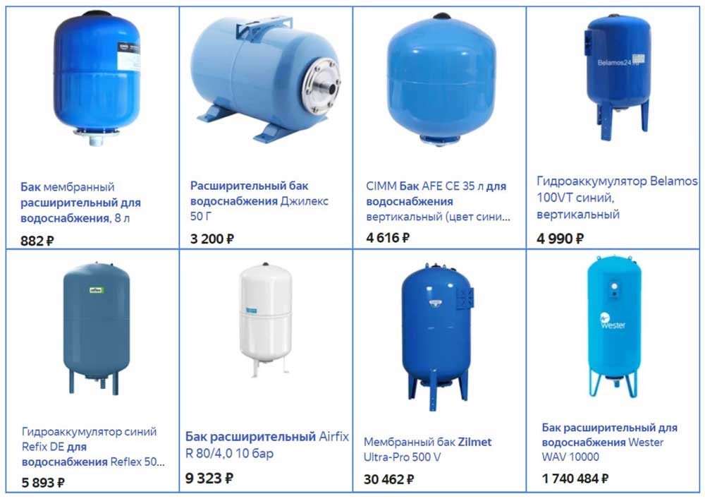 Рис. 15 Стоимость популярных моделей гидроаккумуляторов 2020 г